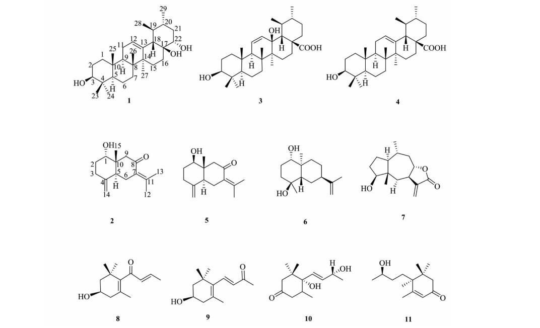 Terpenoid components from the ethyl acetate extract of Sambucus adnata Wall. and their protective activity in vascular endothelial cells (Ⅰ) (Supporting Information)